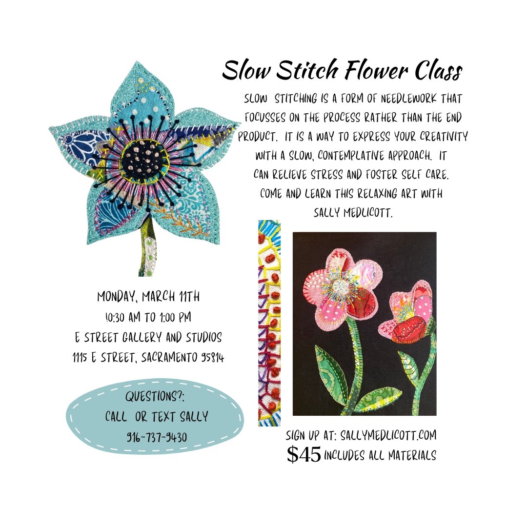Let's make some spring flowers! We will learn how to construct a slow stitch flower using natural fabrics and threads. We will slow down our minds and stitch in peace. We may also have some treats. All materials are included. You don't need to bring anything with you. All levels.